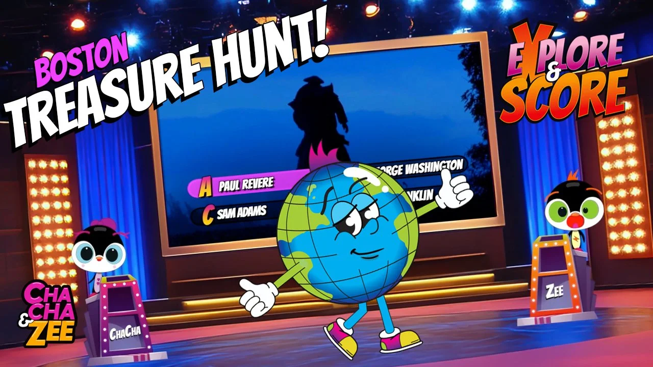 Team up with ChaCha & Zee for Explore & Score ! Geo Trotter hosts this wild trivia challenge — testing your knowledge of the Boston Treasure Hunt & BEYOND!